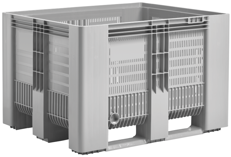The SB3 pallet box in the industrial format 1,200 x 1,000 mm is a consistent further development of the large boxes available on the market with closed and perforated side walls.