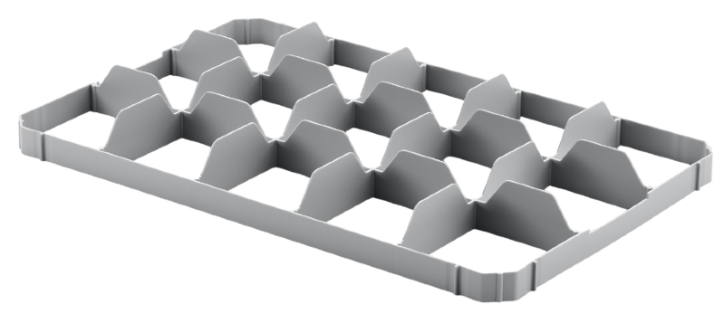 Unterteilungen für Kisten 600 x 400 mm zum sicheren Transport von Gläsern und Geschirr. Vier Varianten, mit Kunststoffnieten flexibel und in variabler Höhe montierbar. Geeignet für alle Glas- und Geschirrgrößen.