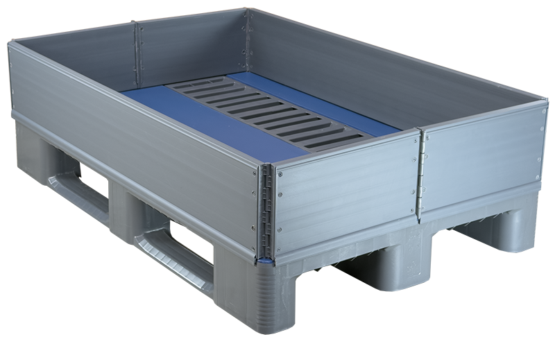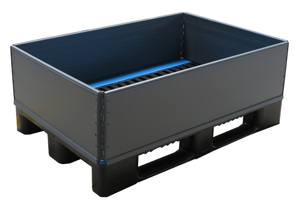 Die Aufsatzrahmen überzeugen durch Ihr leichtes, klappbares Handling für die moderne Logistik und Industrie. Sie sind als einzelne Rahmen oder gestapelt zu verwenden und kompatibel mit Kunststoff- und Holzpaletten. Als Standardbauteil bieten die Rahmen die Möglichkeit diverse Höhen je nach Bedarf abzubilden. Ein Deckel macht die Komponenten zu einer geschlossenen Mehrwegverpackungslösung.