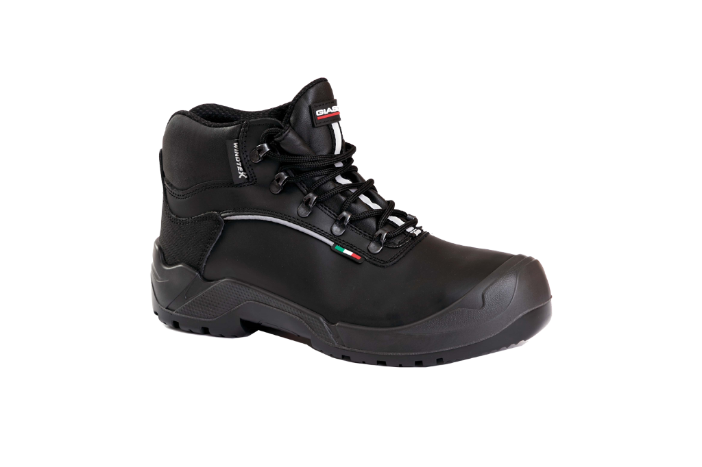 Der KÖLN S3 ist ein hoher Sicherheitsschuh aus WRU-wasserabweisendem Idrotech® Vollleder in der Stärke 1,8-2,0 mm - mit reflektierendem Einsatz. Die Ferse ist aus WRU-wasserabweisendem, kratzfest beschichtetem Leder in der Stärke 1,8-2,0 mm. Sein Futter mit wasserdichter Windtex® Membrane ist atmungsaktiv und abriebfest. Der Schuh präsentiert sich mit einer weichen, gepolsterten, gefütterten Lasche. Mit einer Zehenschutzkappe 200 J polymerer aus nicht-thermischen Kunststoff nach EN 12568 und einer Zwischensohle aus flexiblem, durchtrittsicherem Composite-Textil-Material nach EN 12568.